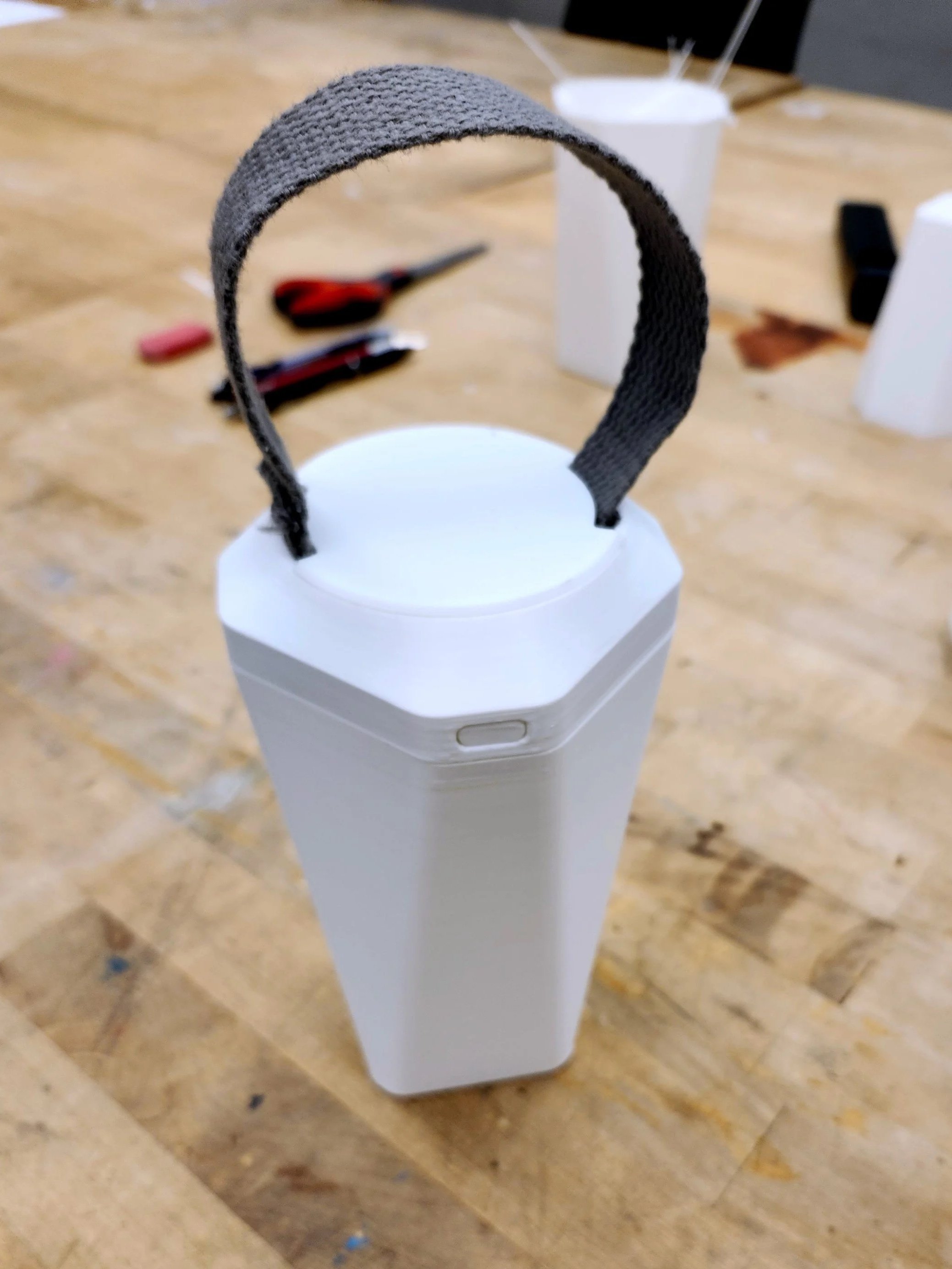 Through this process, various strap attachments were tested, revealing what worked and what didn’t. After much iteration, it became apparent that the design would need to allow the strap to be covertly stored in the base (as to not hinder stability when used flat on the table).