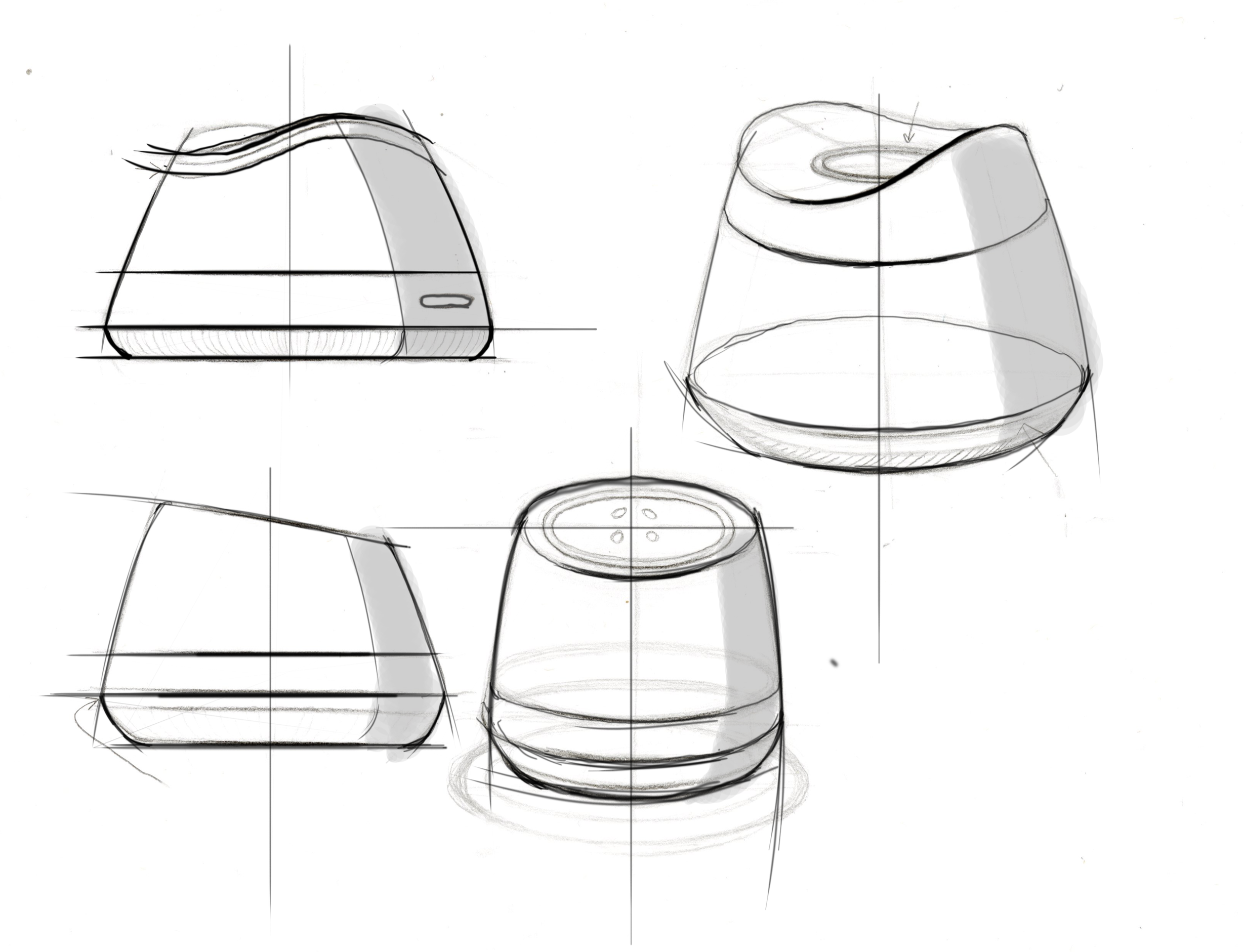 The most successful concepts were further fleshed out and iterated upon in a series of refined sketches. Emerging from this was a silhouette that drew heavily from that of a water droplet, whose unique, bowl-like shape would amplify the light from my LED component.