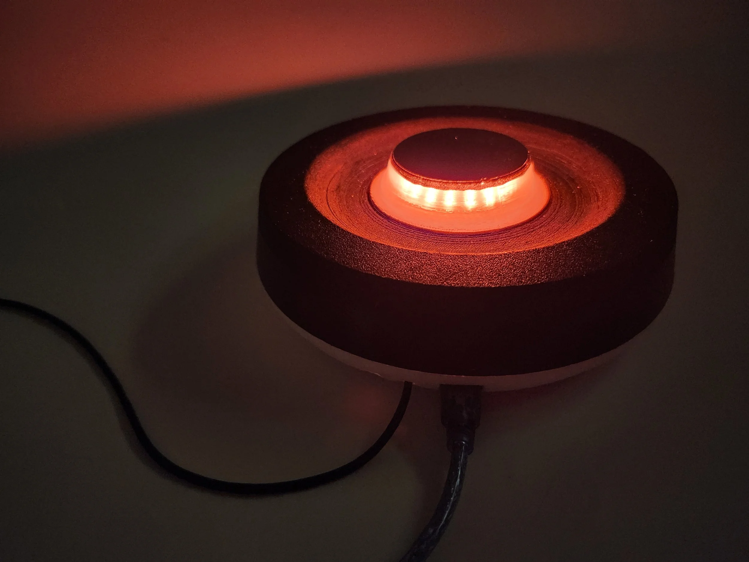 With the adjustments made for the internal components, it was then time to construct the final prototype. The shell was printed out on a Bambu printer, cleaned of all its supports, and then tested for a fit with the previously constructed circuit. A diffusion cover for the LED ring was printed from a semi-transparent filament that would better allow light transmission.