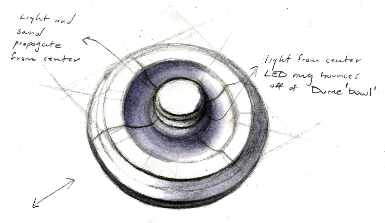 A variety of sketches were made exploring potential exterior forms for my design. The locations and shapes of the LED lights and sensors were experimented with in order to find a configuration that was both visually pleasing and functionally sound.